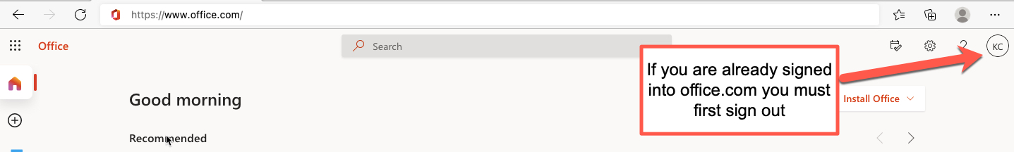 Follow the steps below if you are not sure how to log in to office.com.